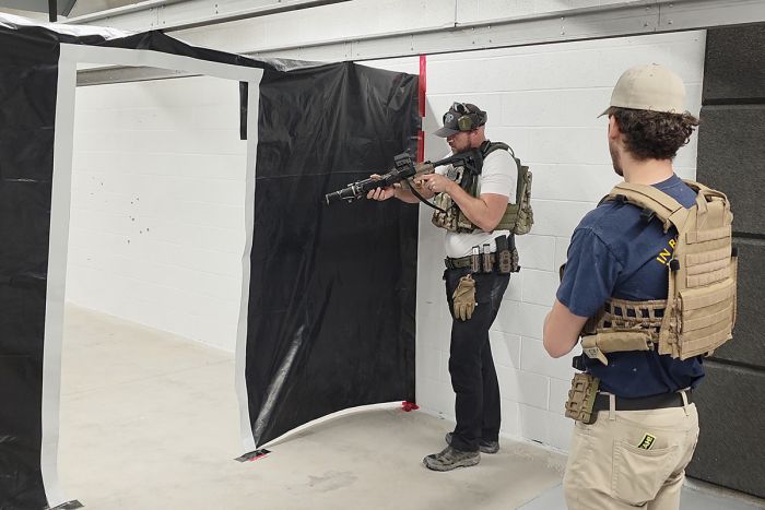 - Implement what your learned in the classroom, potentially encountering shoot/no shoot scenarios as you move through simulated rooms and corridors